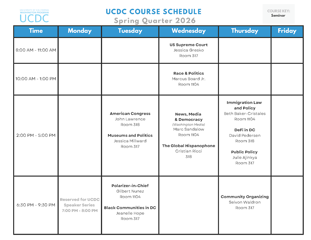 Course Schedules CURRENT TERMWinter Quarter & Spring Semester 2026 FUTURE TERMSpring Quarter 2026 PAST TERMS